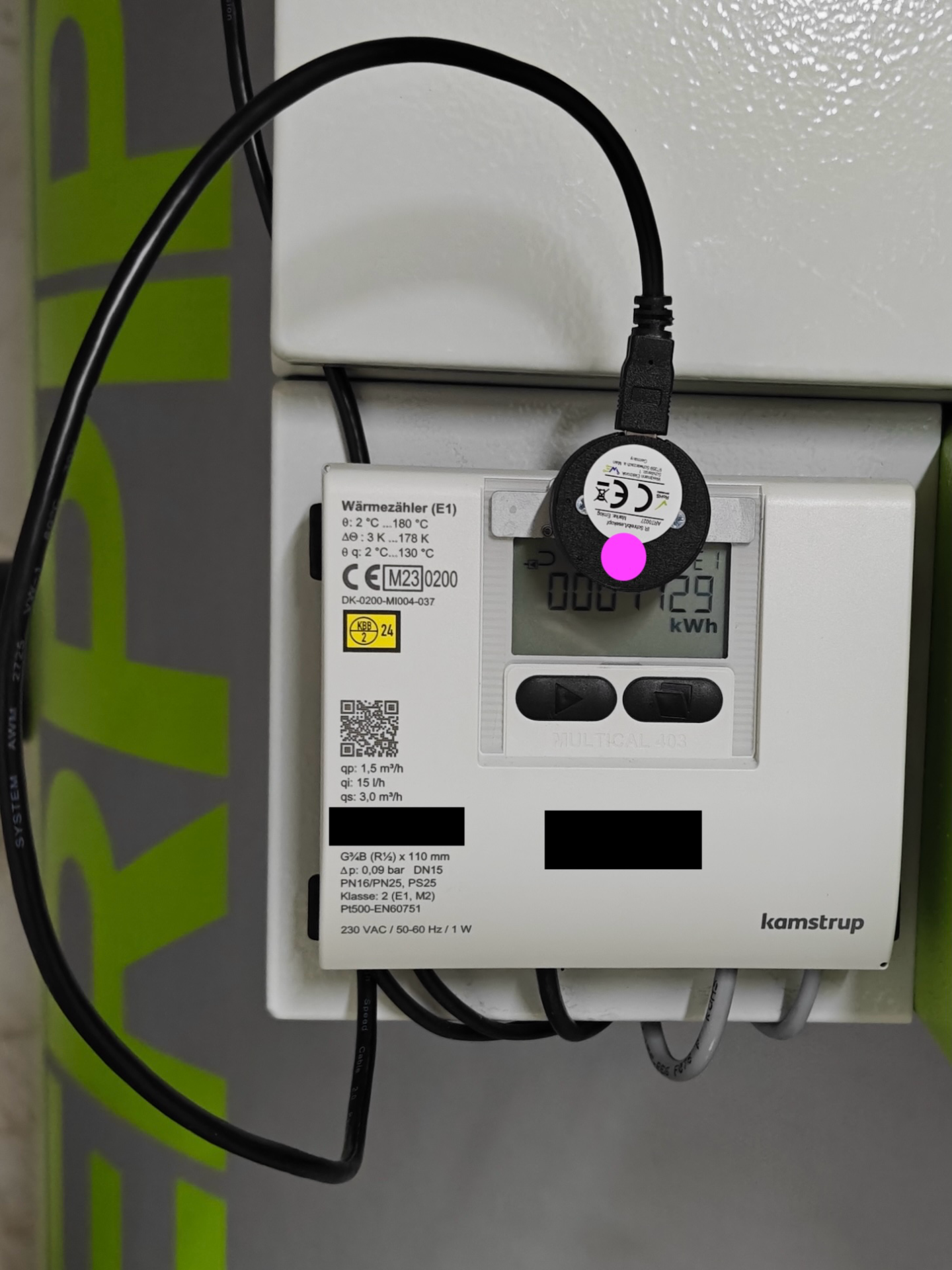 Therefore, we got a new heat counting device so that the provider can know how much "heat" we got from their grid. The